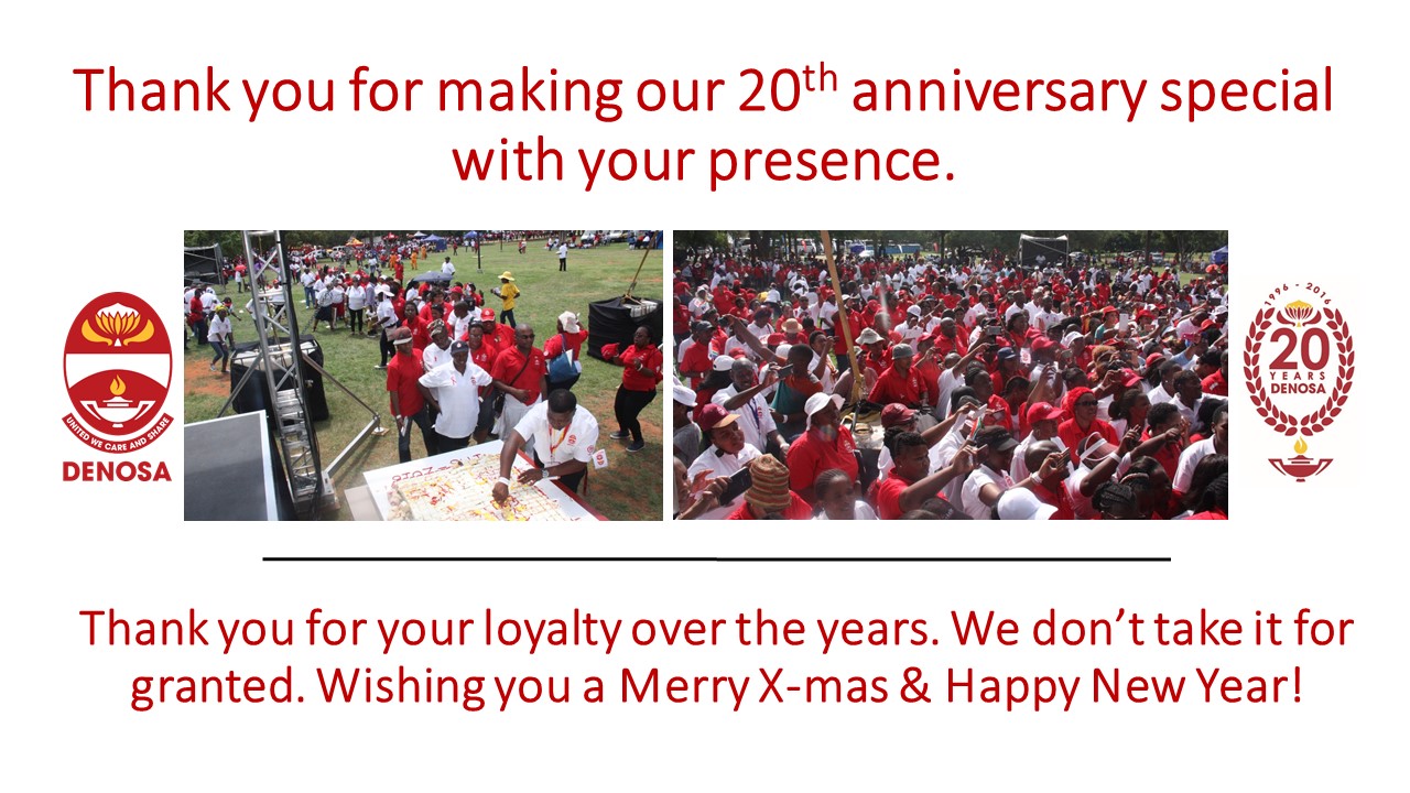 DENOSA would like to thank its members, associates and its key stakeholders for making the 20th anniversary celebrations of the organisation a great success at the Union Buildings in Pretoria on 5 December 2016. This is where the organisation was born 20 years ago.