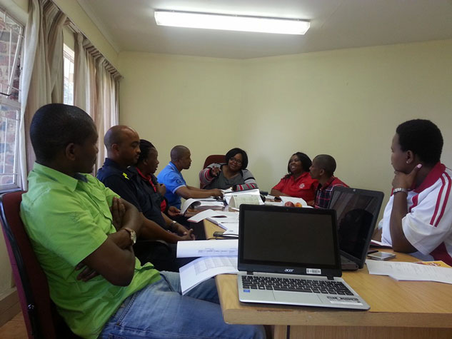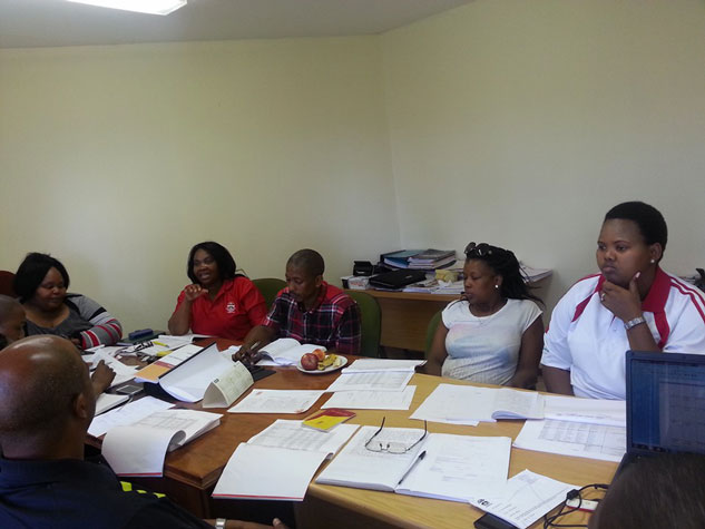 The first Provincial Finance Committee (Fin-Com) meeting was held on 17 November since the handing over to our Provincial Treasurer, Cde Sivuyile Mange, who chaired this Subcomittee meeting of the P.E.C. Present were the P.O.B.s, Cde Mange, Khaya Sodidi, Ntombizanele Mdliva, and Lulu Ntlebi, as well as the 5 Regional Treasurers and Provincial Administrator, Nosikumbuzo Bangani. The meeting was held at the Bhisho Service Point.