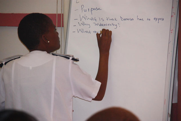 They are taken through what DENOSA is about and what it offers, they are asking questions, and they are given a round-down of what nursing is about and its challenges and traps to avoid.