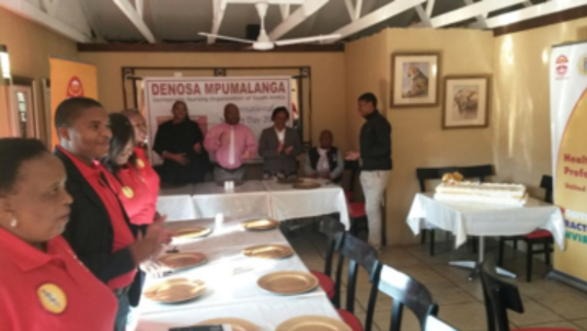 The whole DENOSA PEC in Mpumalanga bid farewell to its provincial Secretary, Silence Matsane, at Enomndeni Lodge on 3 July. Matsane accepted a position as a CEO of Matibidi Hospital from May this year. Present at the farewell party from national office was Acting General Secretary, Madithapo Masemola.