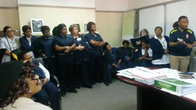 , Sundays, Night Duty allowances are some that nurses have not been paid over the months. Meetings between shop stewards and management often to led to more follow-up appointment meetings while nurses remain with the same questions and complaints. On Tuesday, DENOSA shop stewards took nurses to their convidence to pay the CEO a visit over the same issue, which has not been resolved.